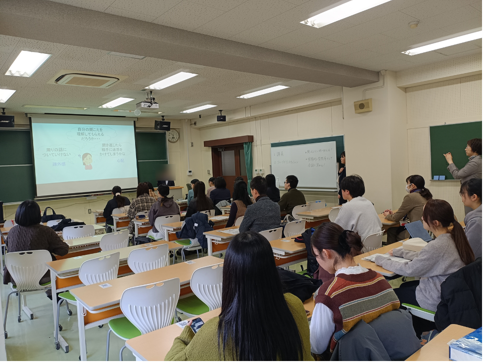 後半は、少人数グループでの交流・グループトークを実施しました。聾学校生の皆さんと、日常生活や好きなことについて語り合いながら、相手の顔を見て話すこと、話し始めを分かりやすく示すこと、文字や身振りを併用することなど、円滑なコミュニケーションの工夫を実際に体験しました。参加者からは、「正確な手話ができなくても、少しの工夫で会話が成り立つことを知った」「まず相手に、どの方法が話しやすいかを聞くことが大切だと分かった」といった学びが共有されました。