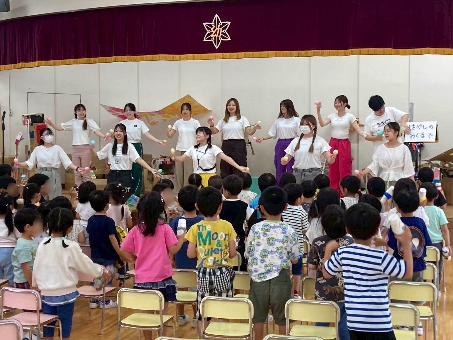 今年度最初の訪問演奏は園児の皆さんに楽しんでもらえるよう、演奏はもちろん選曲、振り付け等にも様々な工夫を凝らし、学生一丸となって公演を行いました。