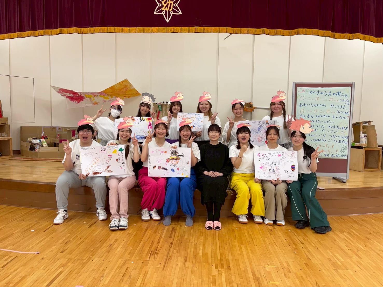 | 公演後のお見送りの様子 | 園児の皆さんから絵のプレゼントをいただきました。 |